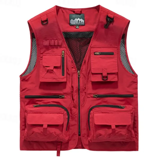 Men’s Hiking Vest Hiking Fleece Vest Sleeveless Vest Outdoor Breathable Comfortable Pocket Nylon Black Army Green Red Hunting Fishing Climbing