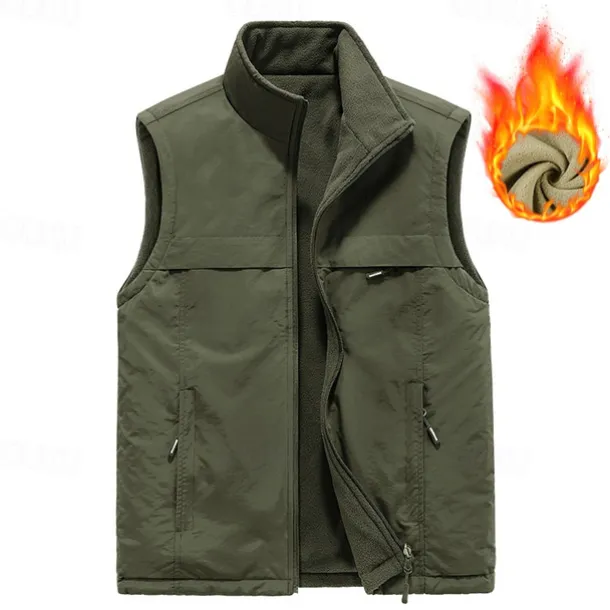 Men’s Hiking Vest Hiking Fleece Vest Sleeveless Vest Outdoor Thermal Warm Fleece Lining Comfortable Winter Multiple Pockets Polyester Black Army Green Khaki Hunting Fishing Climbing