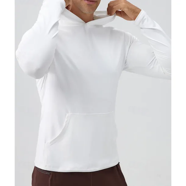 Men’s Hoodie Sweatshirt Pocket Long Sleeve Top Athleisure Fall Breathable Quick Dry Lightweight Tennis Golf Running Sportswear Activewear Solid Colored Navy Black White