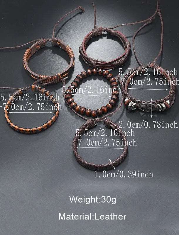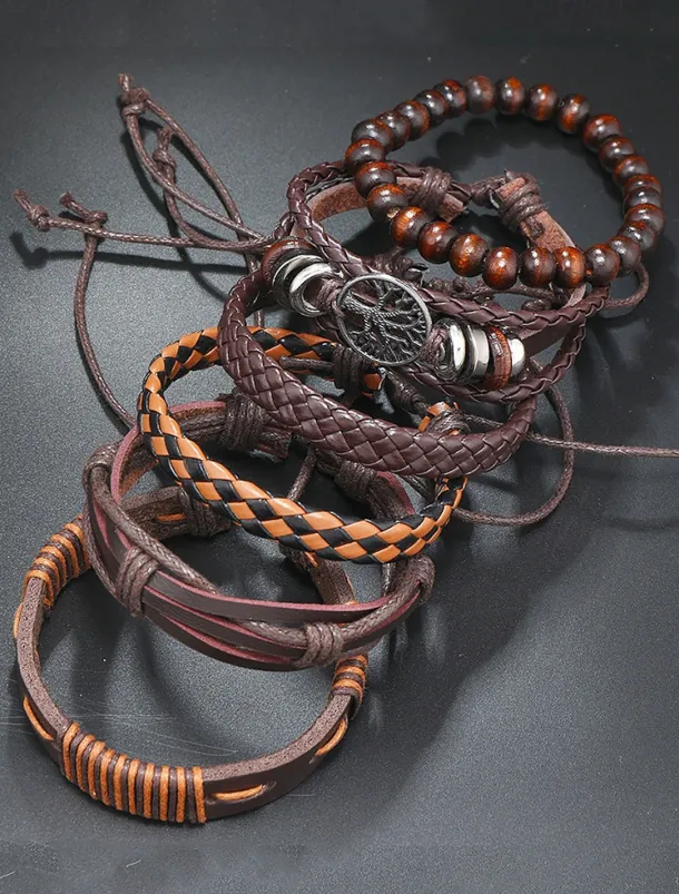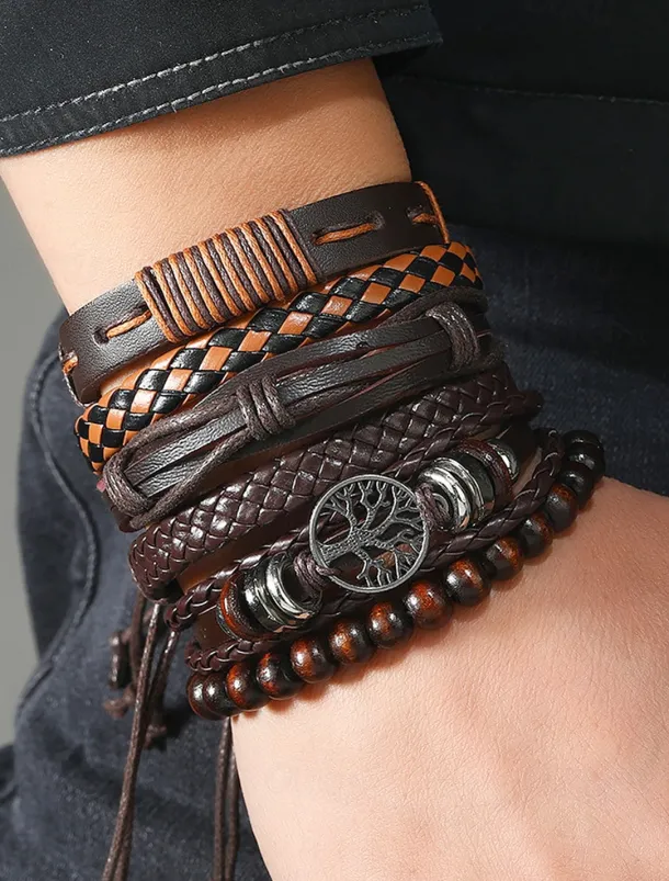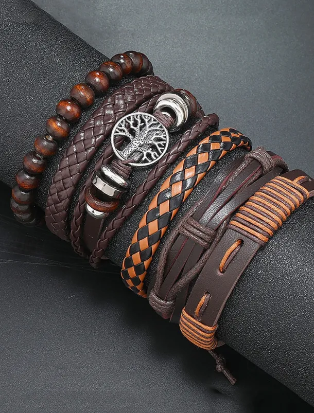 Men’s Leather Bracelet Set – Vintage Multilayer Braided Cuff with Beads and Tree of Life Charm for Casual and Bohemian Styles