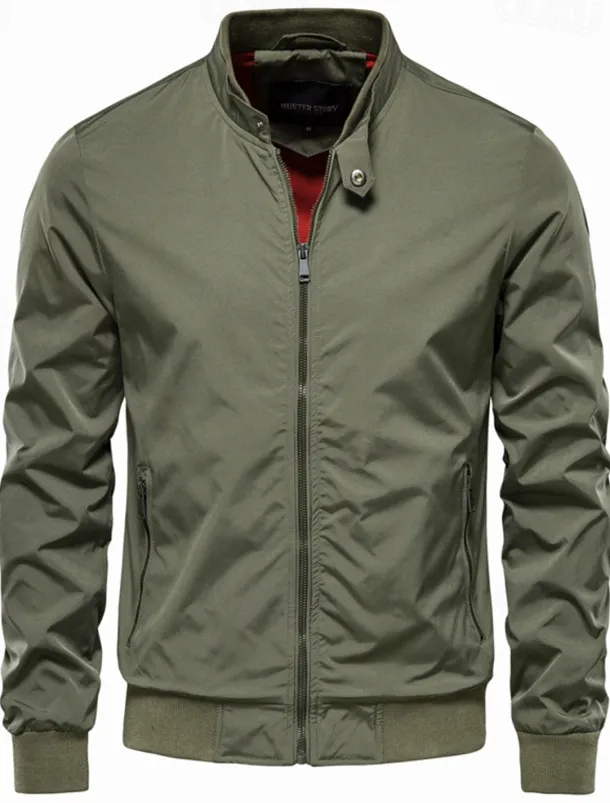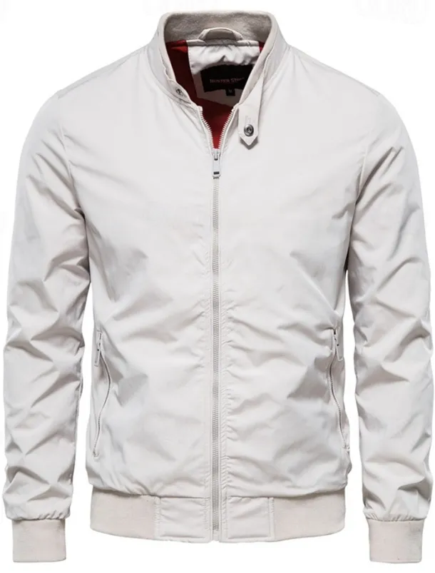 Men’s Lightweight Jacket Jacket Outdoor Causal Windproof Zipper Spring & Fall Solid Color Neutral Daily Standing Collar Regular Black White Navy Blue Green Jacket
