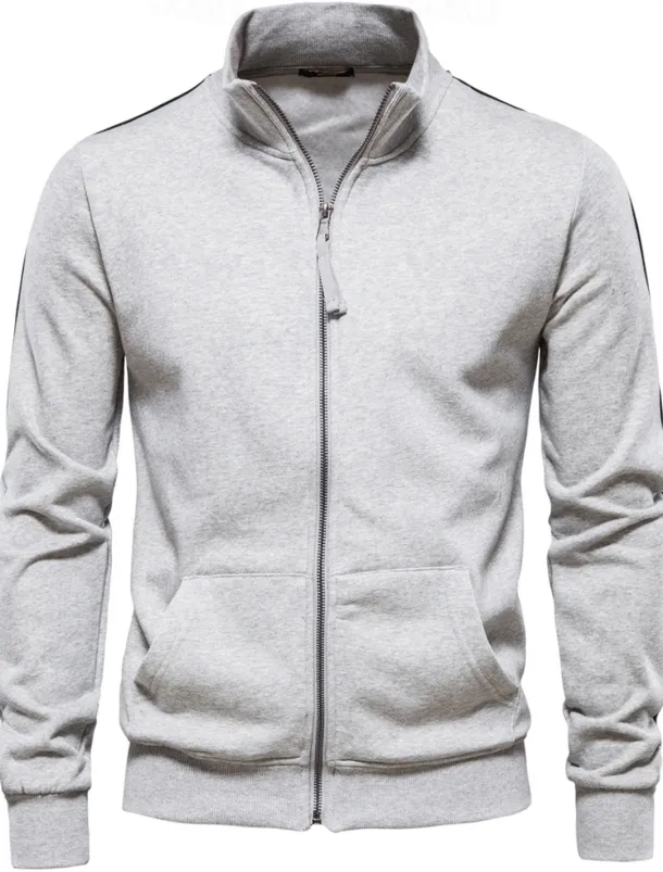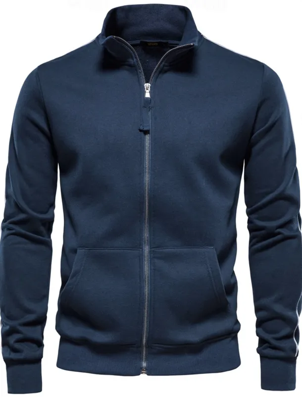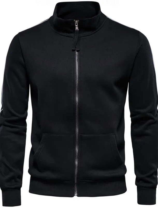 Men’s Lightweight Jacket Outdoor Sport Zipper Pocket Spring & Fall Solid Color Sports Cool Standing Collar Regular Black Navy Blue Khaki Gray Jacket