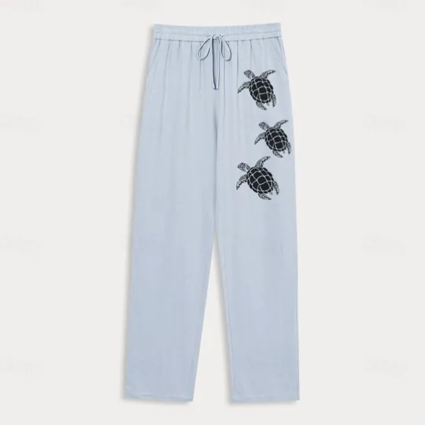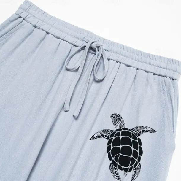 Men’s Linen Pants Trousers Summer Pants Beach Pants Drawstring Elastic Waist Print Graphic Comfort Daily Vacation Beach 20% Linen Vacation Fashion Blue Green