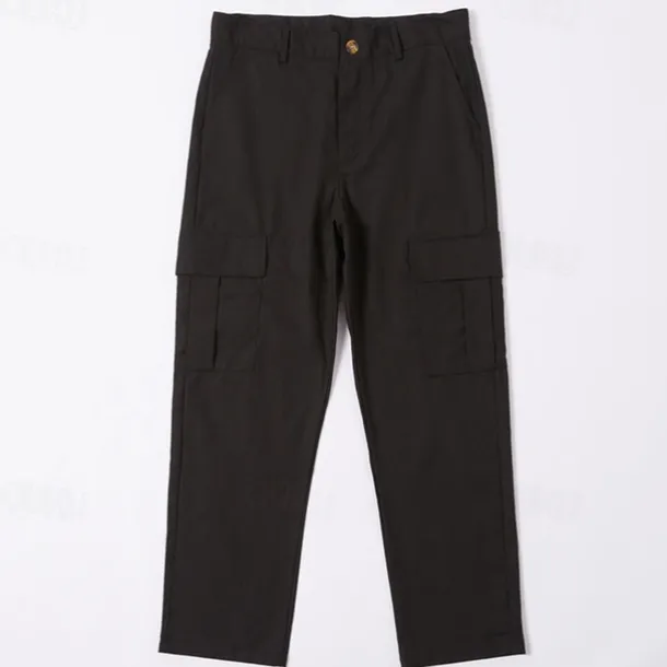 Men’s Linen Pants Trousers Summer Pants Multi Pocket Straight Leg Plain Comfort Breathable Full Length Outdoor Daily Going out Fashion Streetwear Black White