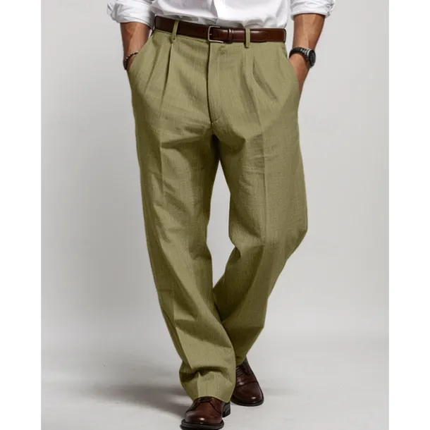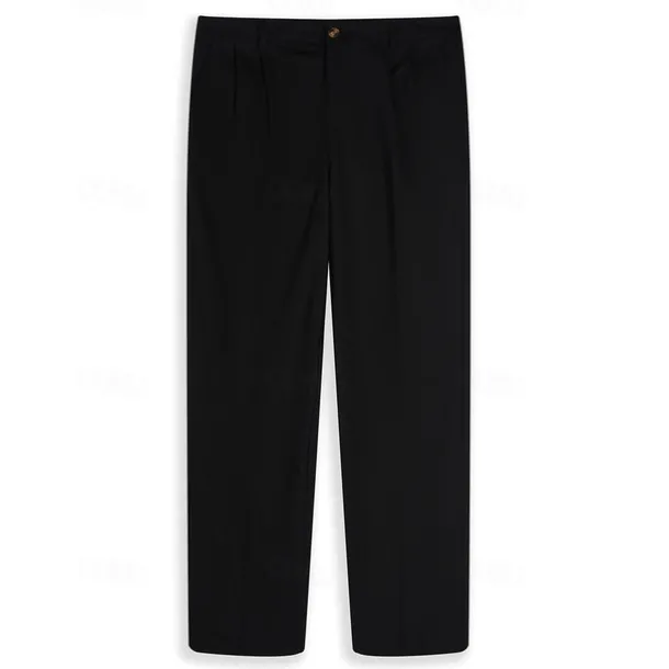 Men’s Linen Pants Trousers Summer Pants Pleated Pants Front Pocket Straight Leg Plain Comfort Breathable Casual Daily Holiday Fashion Basic Black White