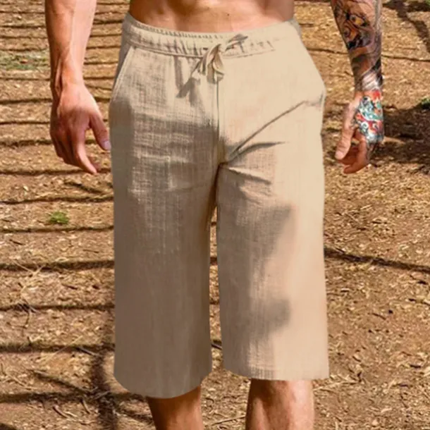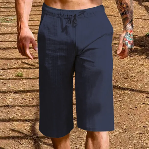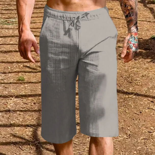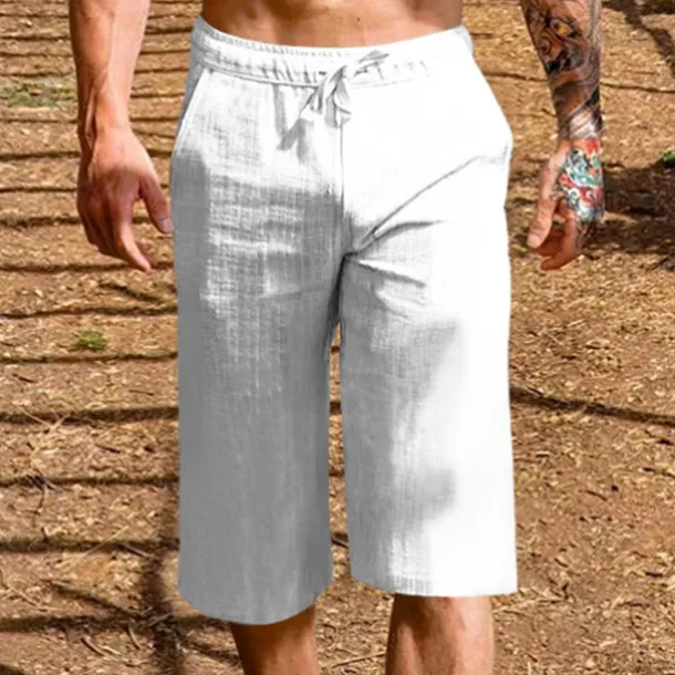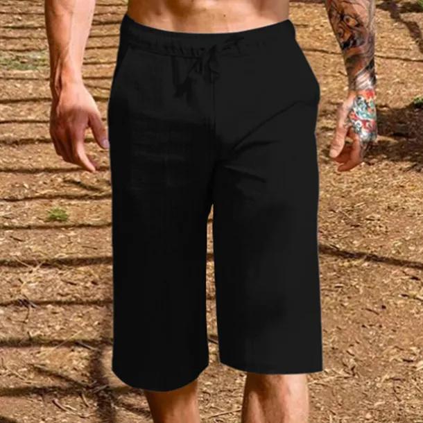 Men’s Linen Shorts Summer Shorts Capri Pants Drawstring Elastic Waist Plain Comfort Breathable Outdoor Daily Going out Linen / Cotton Blend Fashion Casual Black White