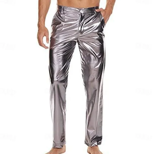 Men’s Metallic Shiny Pants Night Club Pants 70s 80s 90s Disco Pant Party Dance Straight Leg Trousers