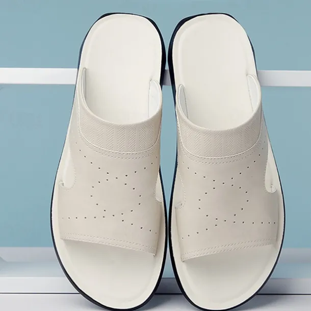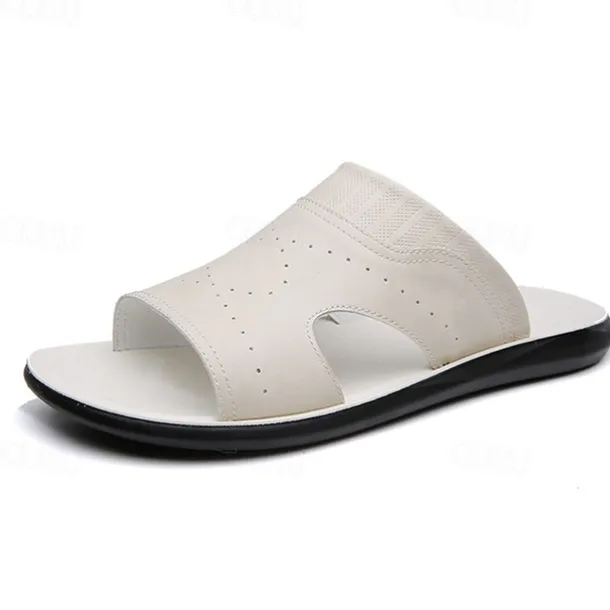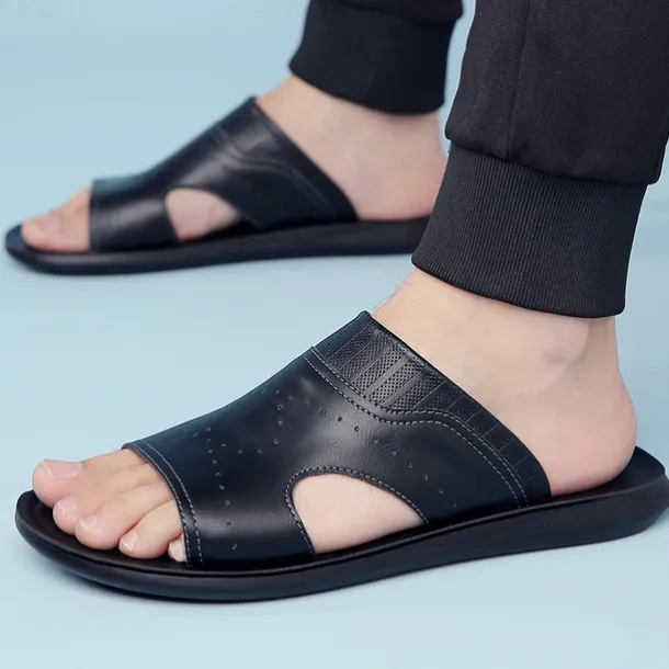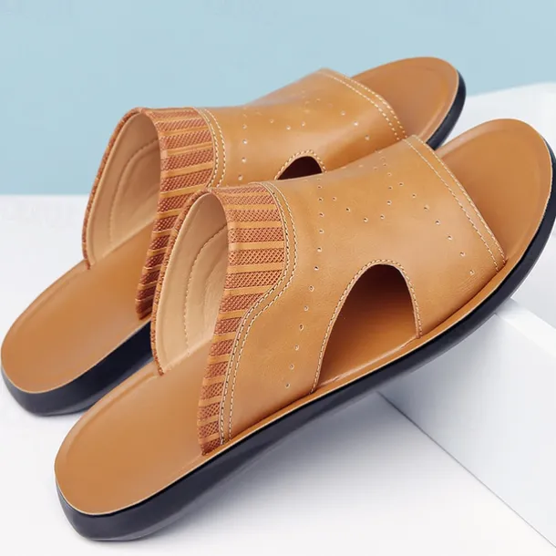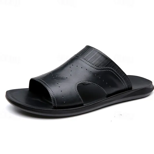 Men’s Open-Toe Embossed Faux Leather Sandals – Casual Slip-On Design with Breathable Perforations for Summer Outdoor Wear