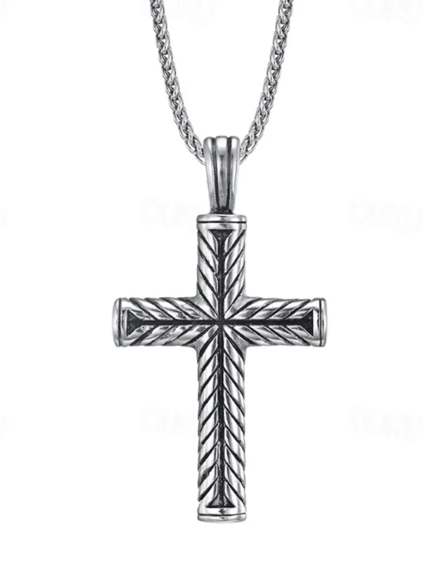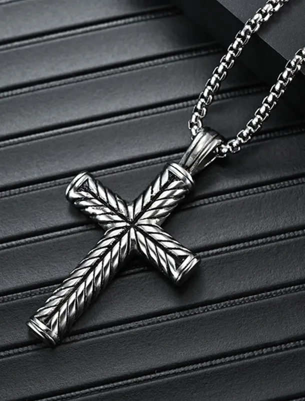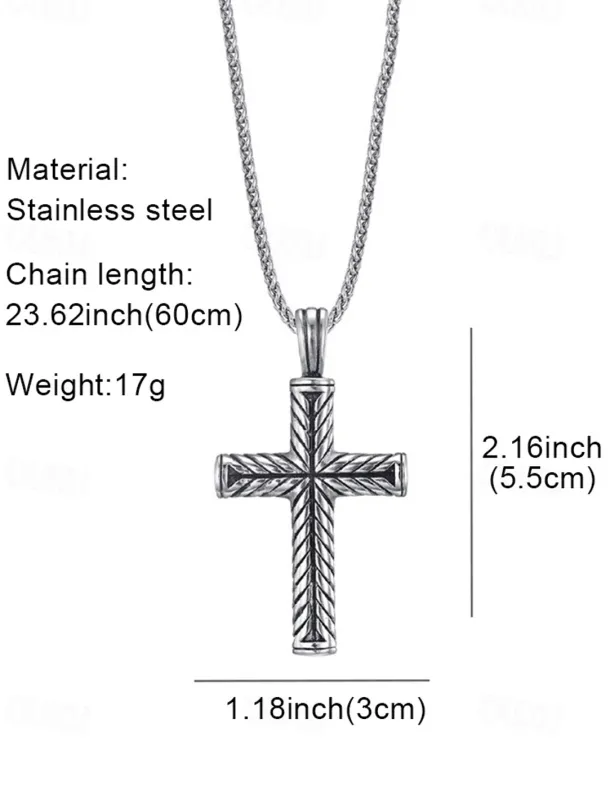 Men’s Pendant Necklace Steel color and steel color flower blue chain Stainless Steel Cross