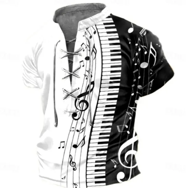 Men’s Piano Musical Instrument T shirt Tee Short Sleeve T shirt 3D Print Lace Up Neck Shirt Casual Daily Black / White Spring & Summer Clothing Apparel S M L XL XXL 3XL