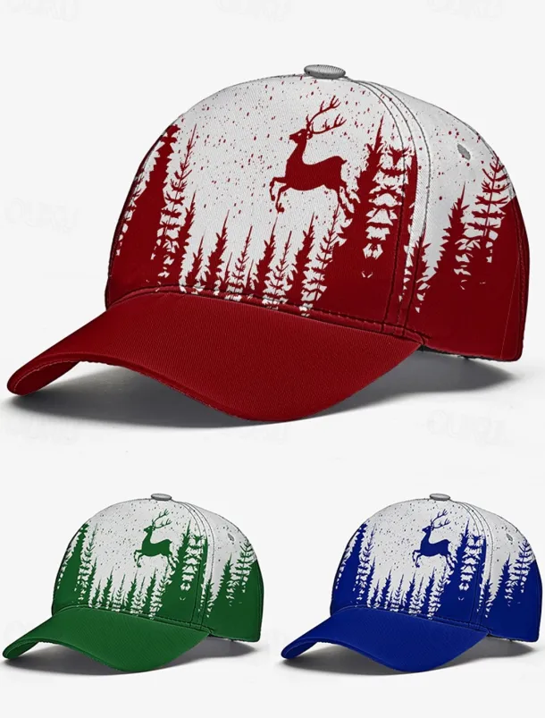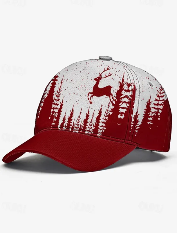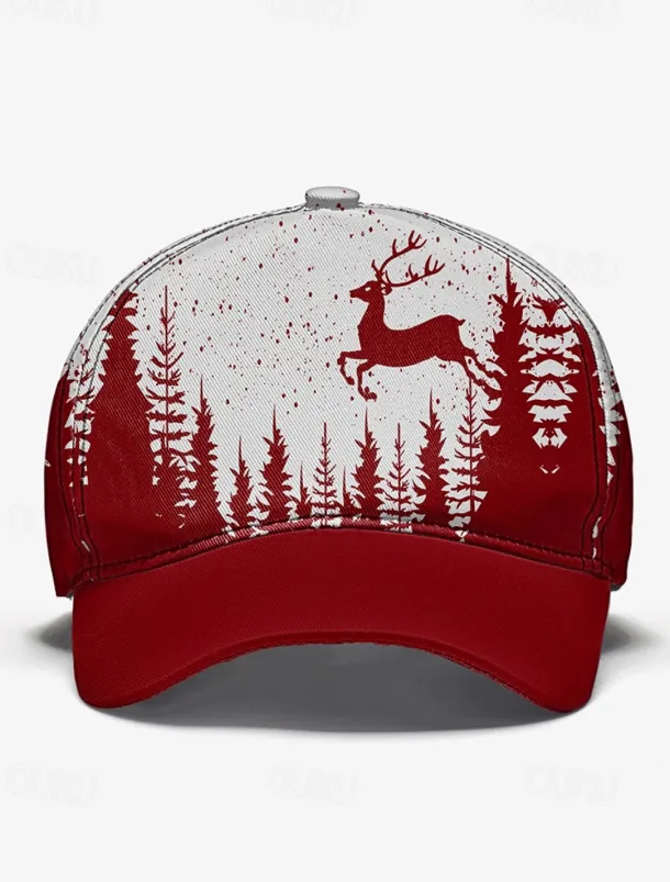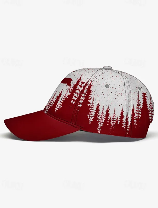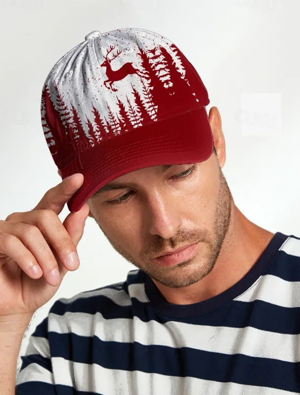 Men’s Red and White Forest Deer Print Baseball Cap – Adjustable Casual Outdoor Hat for Nature Lovers
