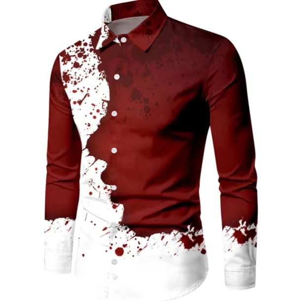 Men’s Shirt Graphic Shirt Graphic Turndown Wine Blue Purple Green 3D Print Outdoor Halloween Long Sleeve Print Button-Down Clothing Apparel Vintage Cool Designer Casual