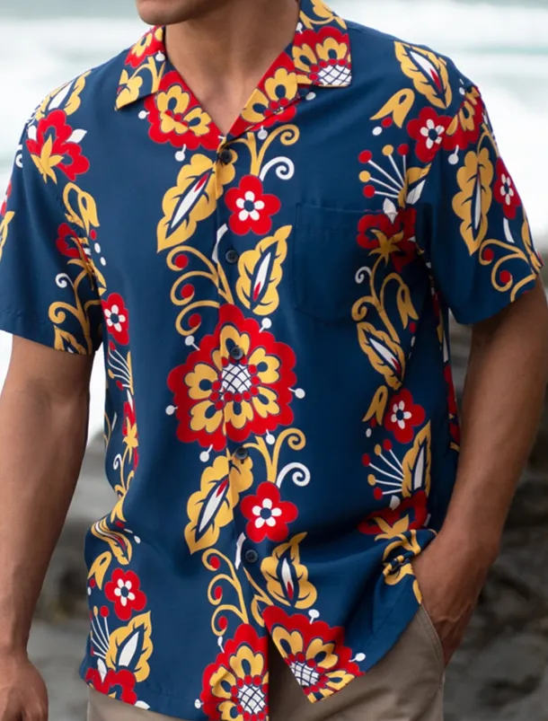 Men’s Shirt Summer Hawaiian Shirt Button Up Shirt Casual Shirt Camp Collar Shirt Graphic Prints Flower Turndown Red Blue Street Holiday Short Sleeve Button Print Clothing Apparel Tropical Hawaiian