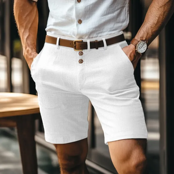 Men’s Shorts Linen Shorts Buttons Pocket Straight Leg Plain Comfort Breathable Short Business Business Black White