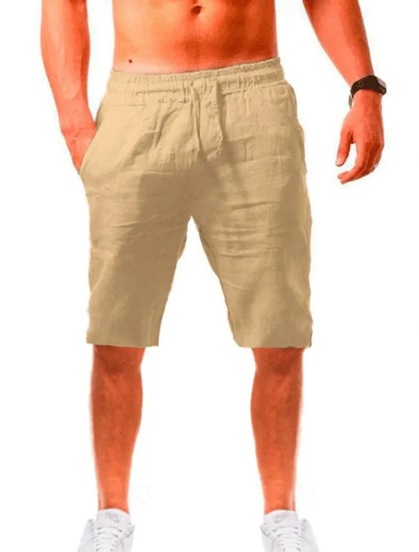 Men’s Shorts Linen Shorts Drawstring Plain Daily Streetwear Basic Light Khaki. Black