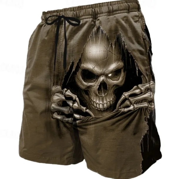 Men’s Skull Death Halloween Costumes Swim Trunks Swim Shorts Board Shorts Mid Waist Dark Punk Gothic Style Holiday Streetwear Side Pockets Mesh Lining Elastic Drawstring Waist Designer Clothing