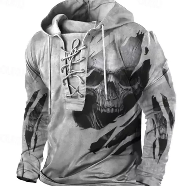 Men’s Skull Graphic Prints Hoodie Hoodies Sweatshirt Streetwear Designer Long Sleeve Hooded Casual Daily Sports Gray Lace up Print Spring & Fall Designer