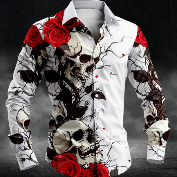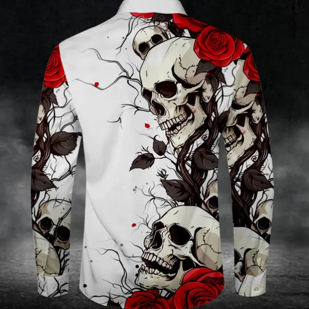 Men’s Skull Halloween Costumes Day of the Dead Button Up Shirt Long Sleeve Casual Dark Party Evening Wear Daily Fall Winter Spring & Summer Shirt Collar Button Up 3D Print Black White Blue Purple