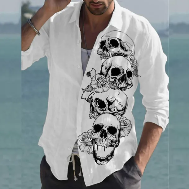 Men’s Skull Halloween Costumes Shirt Button Up Shirt Long Sleeve Fashion Designer Casual Outdoor Casual Daily Spring & Fall Turndown Print Button-Down White