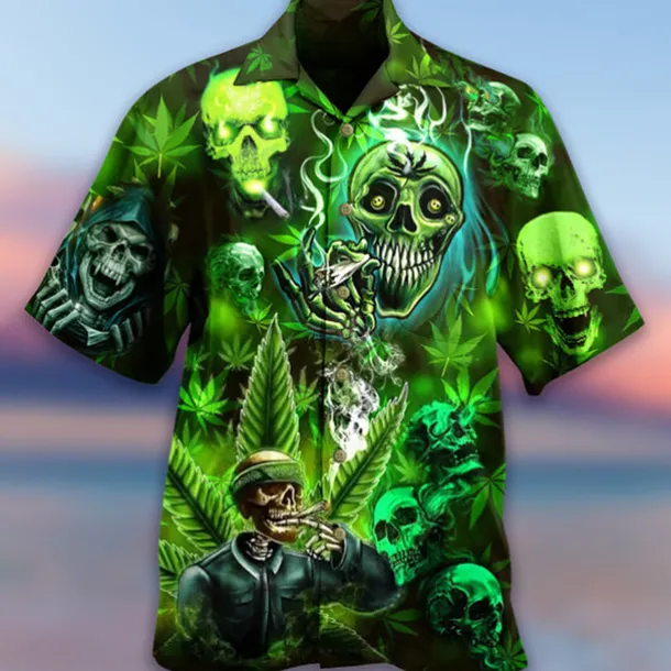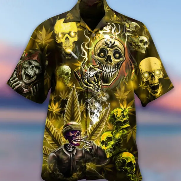 Men’s Skull Halloween Costumes Shirt Button Up Shirt Short Sleeve Fashion Designer Casual Casual Daily Beach Spring & Summer Turndown 3D Button-Down Yellow Blue Purple Green