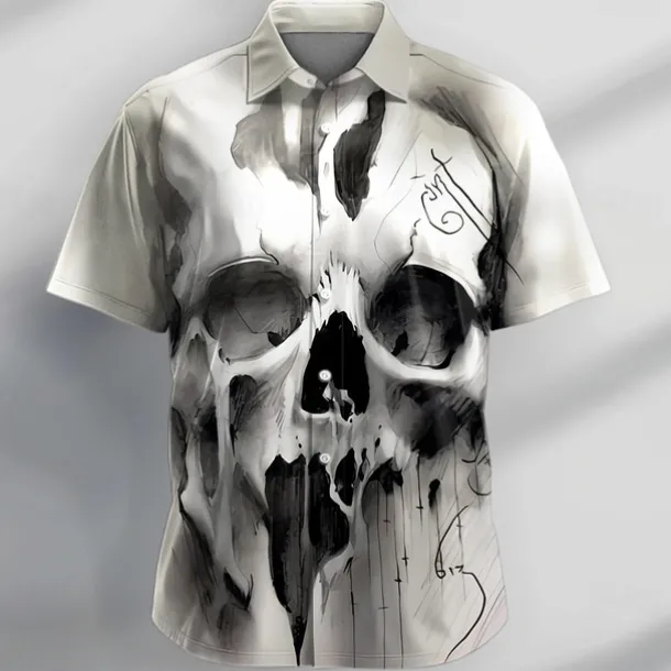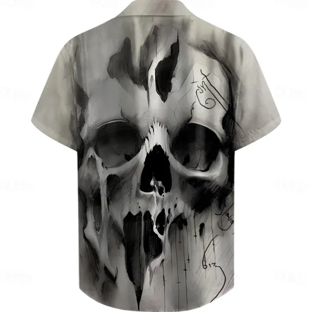 Men’s Skull Halloween Costumes Shirt Short Sleeve Casual Dark Party Daily Holiday Summer Turndown Buttons Print Gray