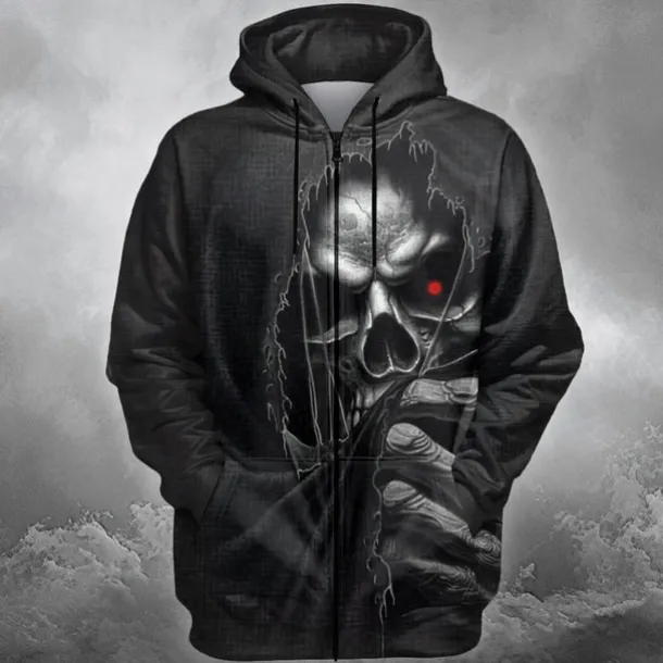 Men’s Skull Hoodie Hoodies Sweatshirt Punk Fashion Long Sleeve Crew Neck Black Fall Winter Designer