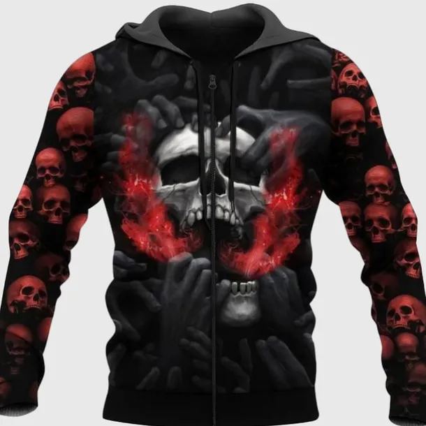 Men’s Skull Novelty Skulls Hoodie Hoodies Sweatshirt Fashion Cool Long Sleeve Hooded Vacation Halloween Holiday Black Red Print Spring & Fall Designer