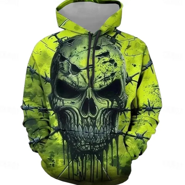 Men’s Skulls Hoodies Sweatshirt Fashion Cool Long Sleeve Crew Neck Party Holiday Streetwear Green Drawstring Fall Winter Designer