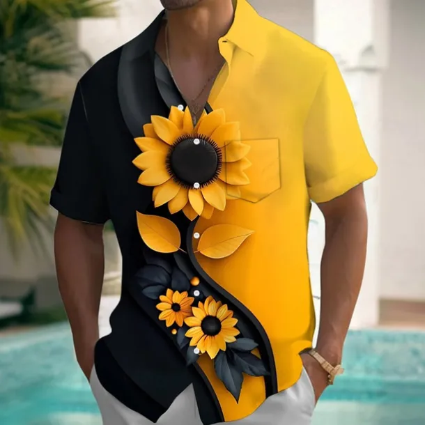 Men’s Smoky Floral Print Halloween Costumes Shirt Summer Shirt Button Up Shirt Short Sleeve Vintage Retro Outdoor Vacation Dailywear Summer Spring Turndown 3D Print Collared Shirts Front One Pocket