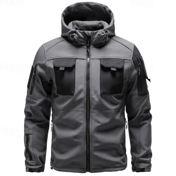 Men’s Softshell Jacket Hiking Jacket Winter Outdoor Color Block Windproof Water Resistant Windbreaker Jacket Traveling Black Army Green Grey