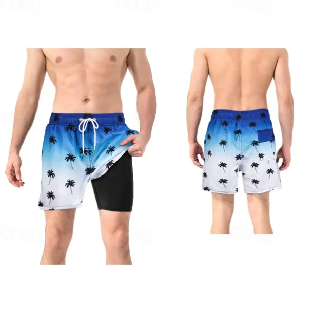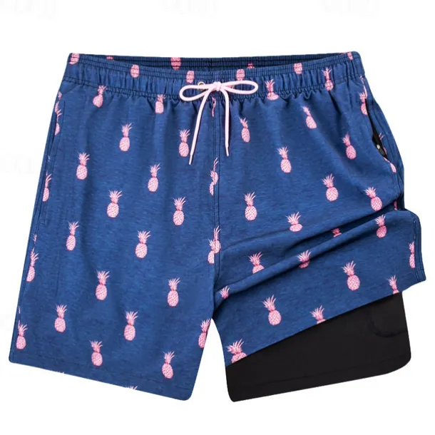 Men’s Swim Trunks Swim Shorts Board Shorts Bottoms Drawstring 2 in 1 with Pockets Swimming Surfing Beach Water Sports Printed Summer Spring