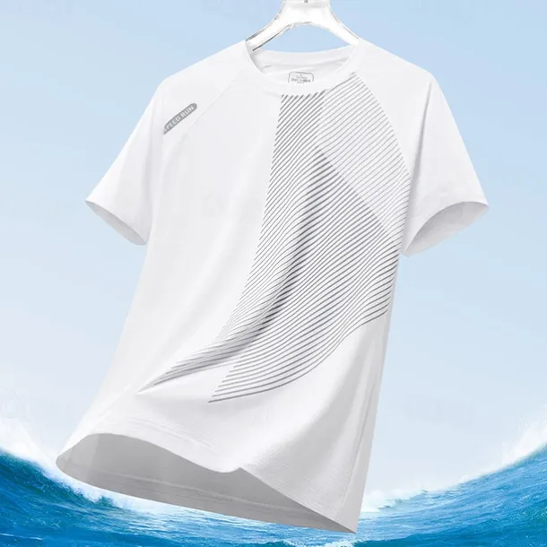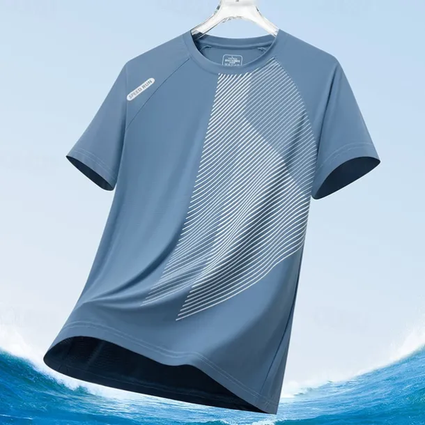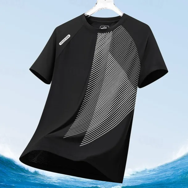 Men’s T shirt Hiking Vest Sleeveless Crew Neck Tank Top Sleeveless Shirt Vest Top Outdoor Quick Dry Soft Sweat wicking Polyester Stripes Black White Blue Climbing Camping / Hiking / Caving Traveling