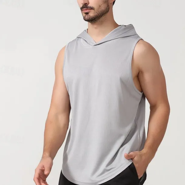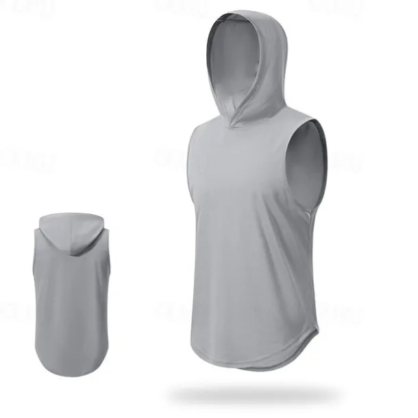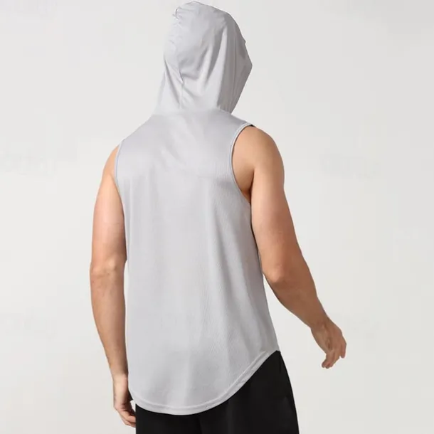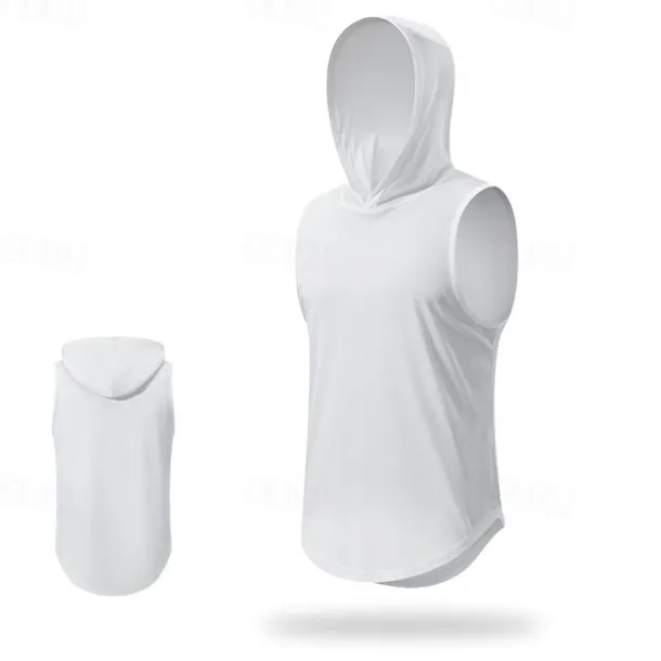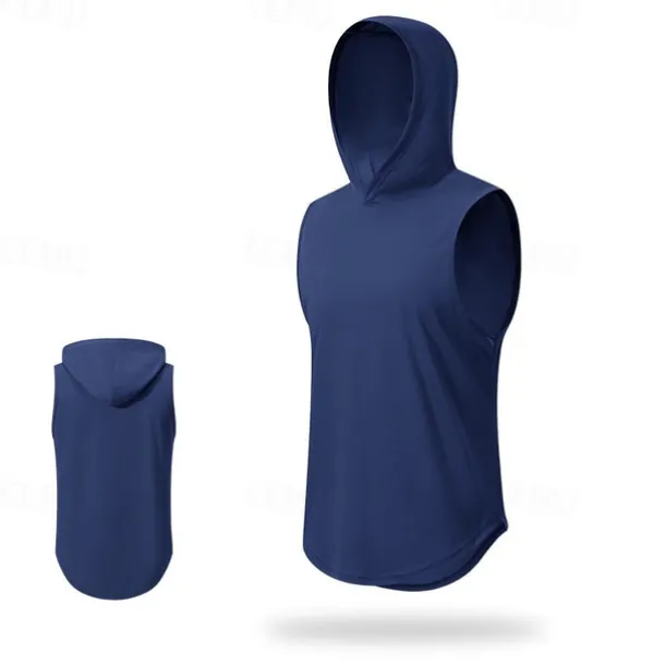 Men’s T shirt Hiking Vest Sleeveless Hooded Tank Top Sleeveless Shirt Vest Top Outdoor Quick Dry Soft Sweat wicking Polyester Black White Navy Blue Climbing Camping / Hiking / Caving Traveling