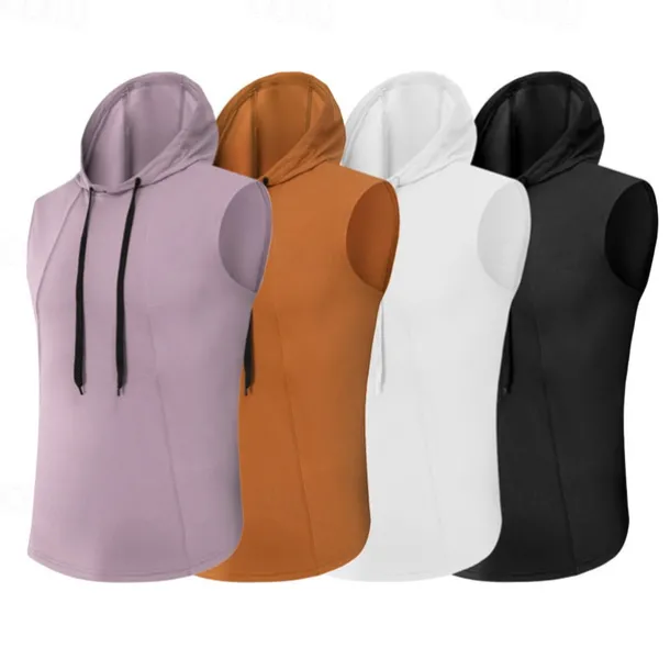 Men’s T shirt Hiking Vest Sleeveless Hooded Tank Top Sleeveless Shirt Vest Top Outdoor Quick Dry Soft Sweat wicking Polyester Black White Purple Climbing Camping / Hiking / Caving Traveling