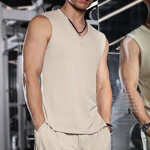 Men’s T shirt Hiking Vest Sleeveless V Neck Tank Top Sleeveless Shirt Vest Top Outdoor Quick Dry Soft Sweat wicking Polyester Black Green Apricot Climbing Camping / Hiking / Caving Traveling