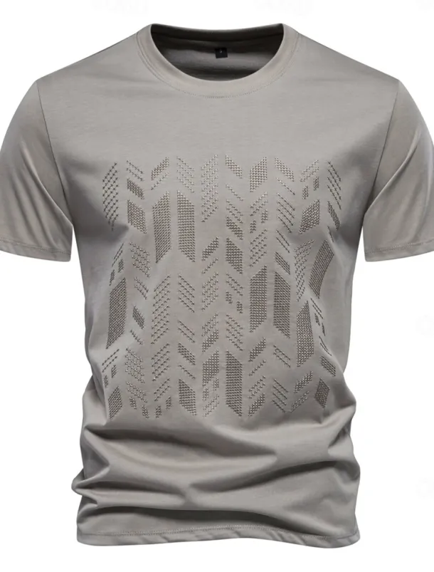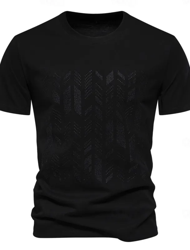 Men’s T Shirt Short Sleeve Crew Neck Summer Spring Geometric Knitwear Vacation Vintage Embroidered Embroidery School Training Outdoor Black White Light Green Top Tee for Men