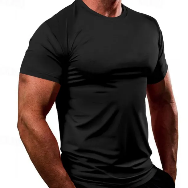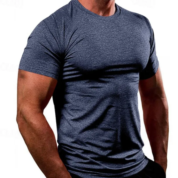 Men’s T shirt Short Sleeve Crew Neck Tee Tshirt Muscle T-Shirt Short Sleeve Shirt Outdoor Quick Dry Workout Soft Sweat wicking Polyester Black White Navy Blue Gym Climbing Camping / Hiking / Caving