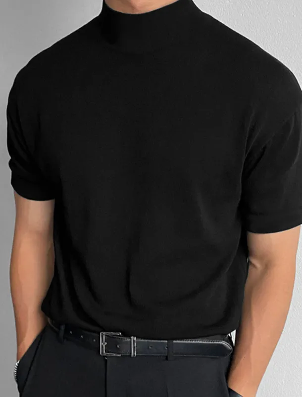 Men’s T shirt Tee Tee Top Plain Turtleneck Street Vacation Short Sleeves Knitting Clothing Apparel Fashion Designer Basic