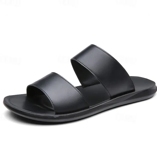 Men’s Tan Faux Leather Slide Sandals – Minimalist Double Strap Design, Lightweight and Comfortable Summer Footwear for Beach and Casual Wear