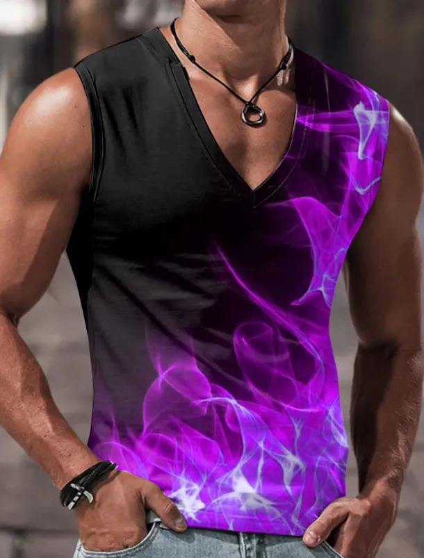 Men’s Tank Top Vest Top Sleeveless T Shirt for Men Graphic Color Block Flame V Neck Clothing Apparel 3D Print Sports Running Sleeveless 3D Print Designer Casual Muscle