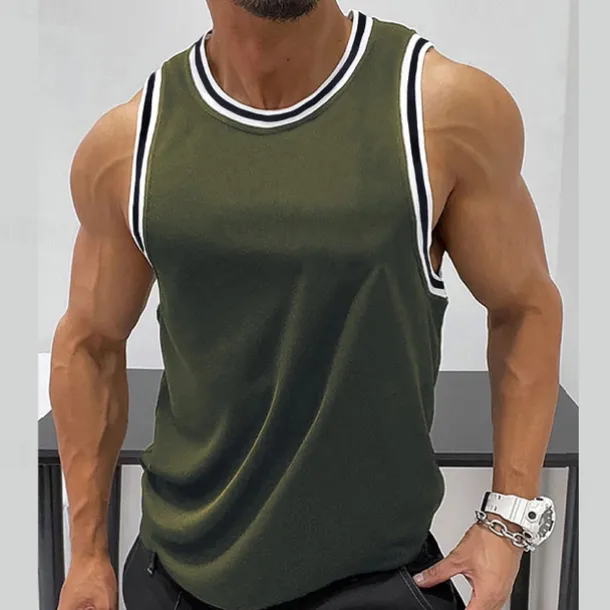 Men’s Tank Top Vest Top Undershirt Sleeveless Shirt Sleeveless Crew Neck Summer Color Block Fashion Designer Muscle Outdoor Going out Gym Wine Blue Green Top Tee for Men