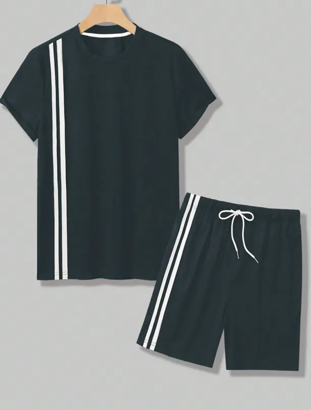 Thrilled to present an exclusive Men’s Tee & Drawstring Waist Shorts combo carefully crafted with our partners! This ultra-comfy subtly elastic pair boasts contemporary stripes and color blocks Each item is individually tailored – as unique as you are
