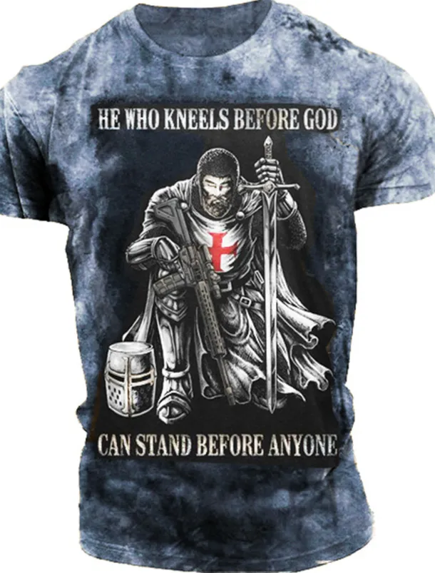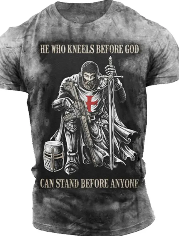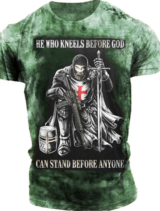 Men’s Templar Cross Soldier T shirt Graphic Tee Slogan T Shirts Distressed T Shirt Short Sleeve T shirt 3D Print Crew Neck Shirt Vintage Fashion Designer Outdoor Casual Daily Red Blue Brown Summer