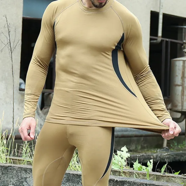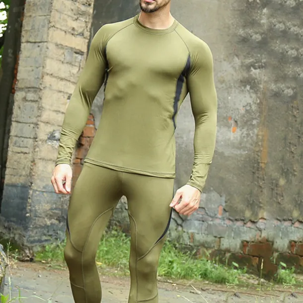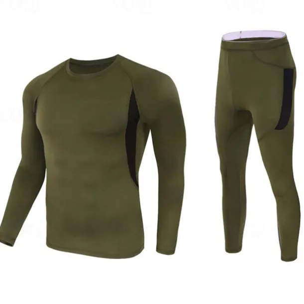 Men’s Tracksuit 2 Piece Casual Fall Long Sleeve Thermal Warm Soft Fitness Gym Workout Running Sportswear Activewear Color Block Black Army Green Khaki