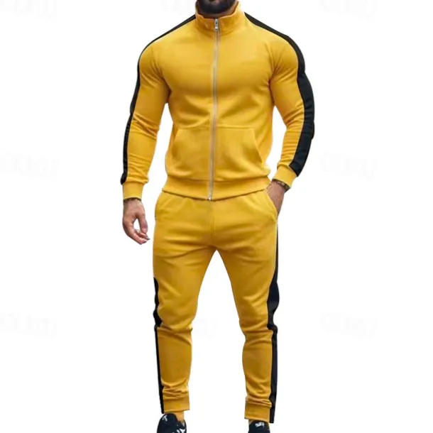 Men’s Tracksuit Jogging Suit 2 Piece Casual Fall Long Sleeve Breathable Soft Fitness Gym Workout Running Sportswear Activewear Color Block Black Yellow Army Green