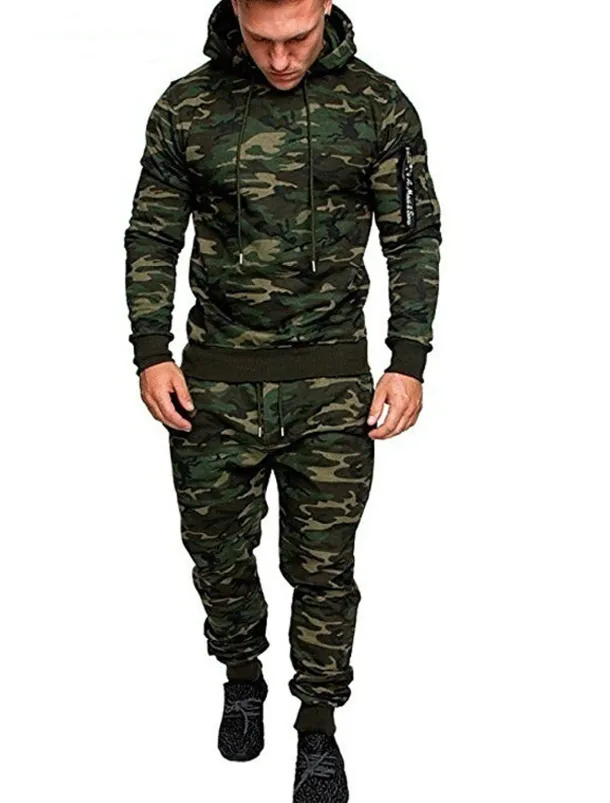 Men’s Tracksuit Sweatsuit Black Dark Gray Light Grey Camouflage Gray Camouflage Green Hooded Sports & Outdoor Cool Winter Clothing Apparel Hoodies Sweatshirts Long Sleeve