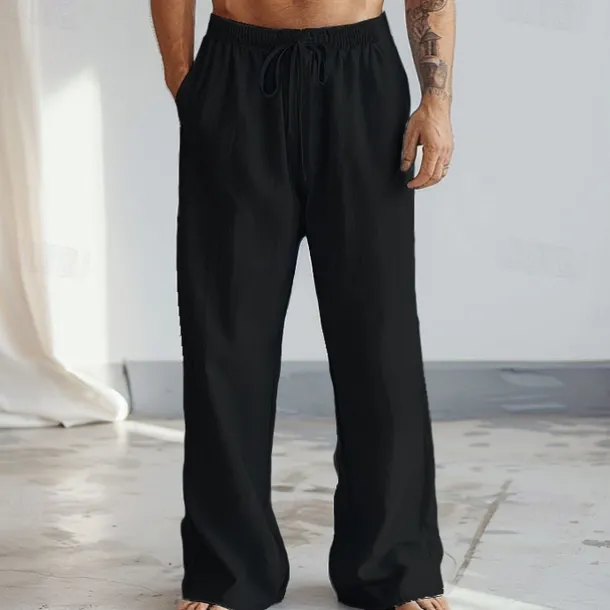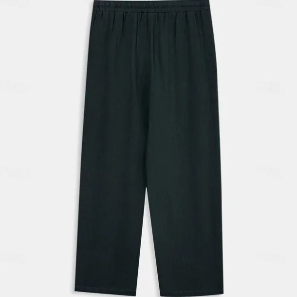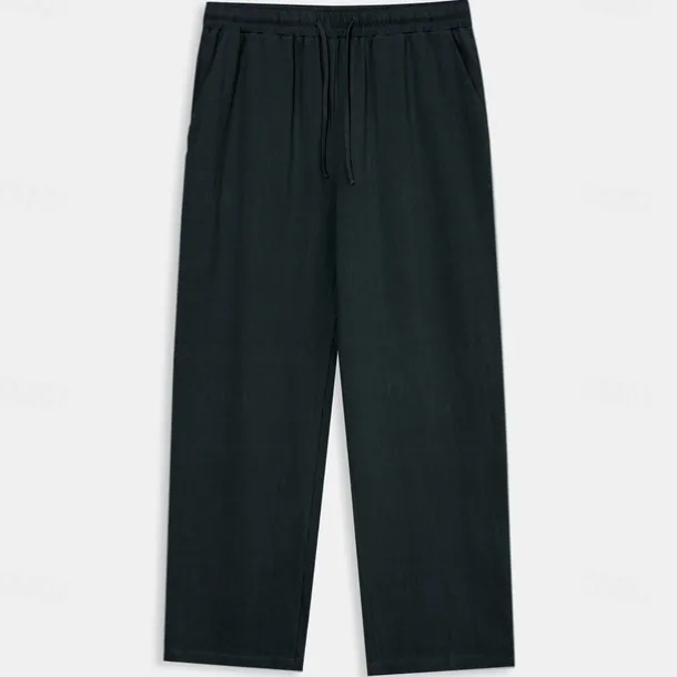 Men’s Trousers Plain Full Length Casual Daily Cotton Linen Light Blue Micro-elastic