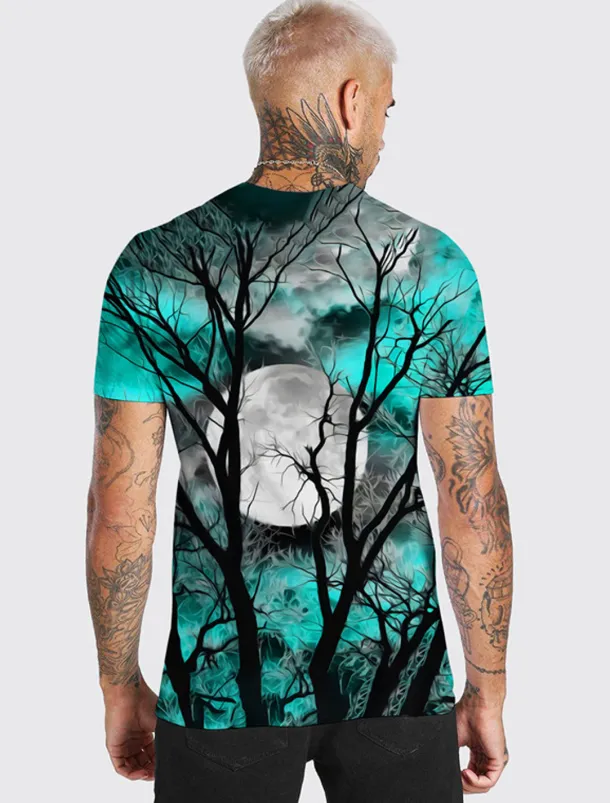 Men’s Unisex Moon Graphic Prints Shirt T Shirt Tee Short Sleeve T shirt 3D Print Crew Neck Shirt Designer Casual Big and Tall Halloween Daily Holiday Wine Yellow Red Summer Clothing Apparel S M L XL