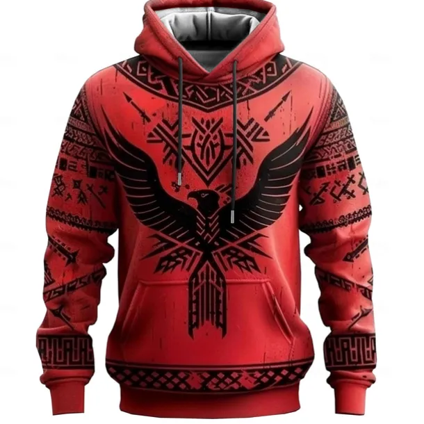 Men’s Viking Hoodies Sweatshirt Fashion Cool Long Sleeve Crew Neck Party Holiday Streetwear Red Drawstring Fall Winter Designer