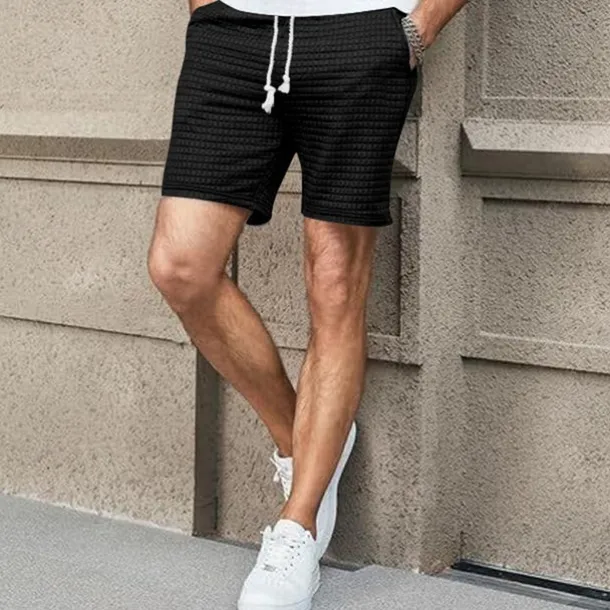 Men’s Waffle Shorts Sweat Shorts Shorts Summer Shorts Beach Shorts Pocket Drawstring Elastic Waist Plain Comfort Breathable Short Outdoor Sports Classic Casual Black White
